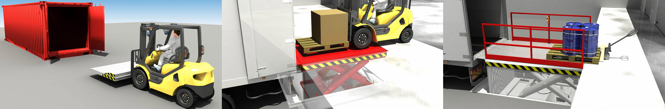 Как правило, данное оборудование применяется на складах для ускорения разгрузочных или погрузочных работ. Идея такова: при проектировании складского помещения, пол заливается на определённой высоте, которая подходит для одного типа автомобилей и совершенно не подходит для других.